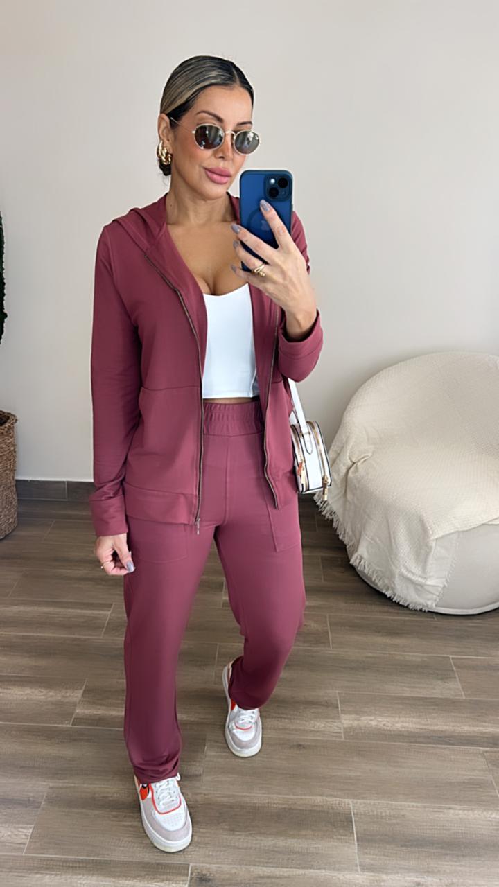 Conjunto Eloisa, bomber e calça todo em moletinho premium com elastano.