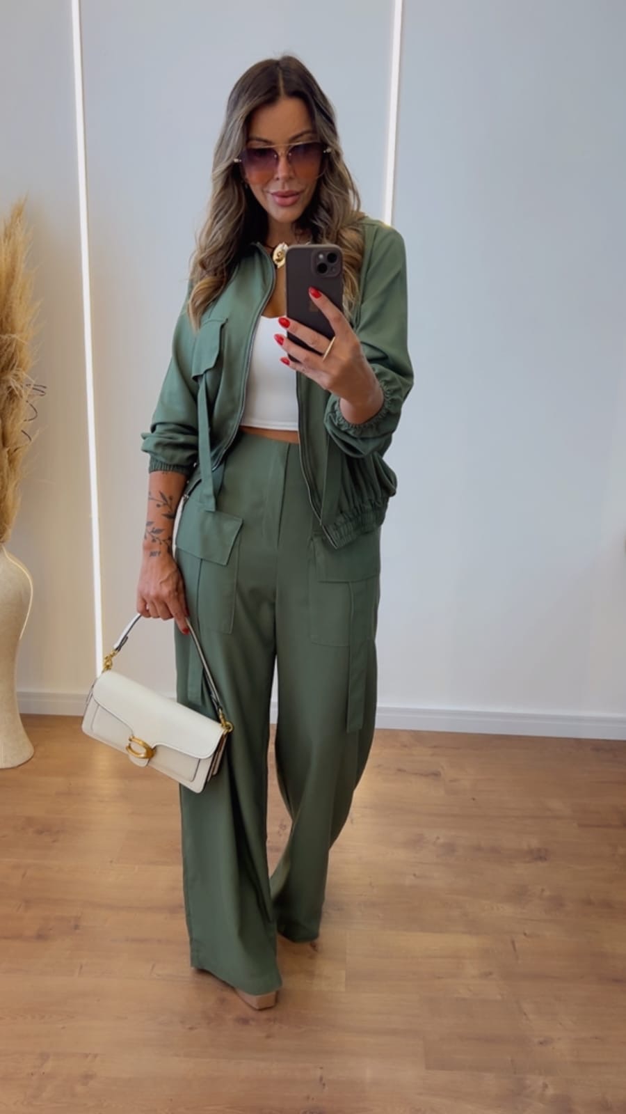 Conjunto de Bomber e calça, proposta ampla, mais soltinha e super confortavel. Tecido viscose sarjada premium.