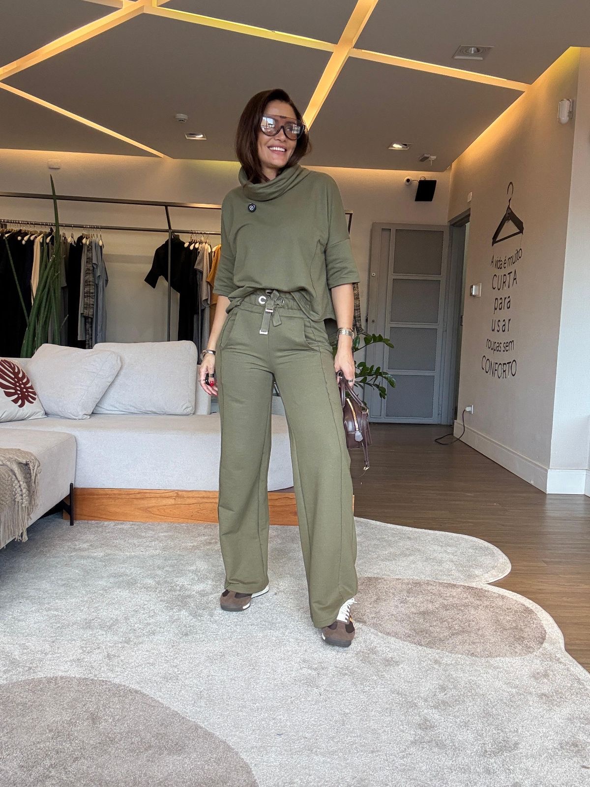 Conjunto de blusa e calça estilo pantalona