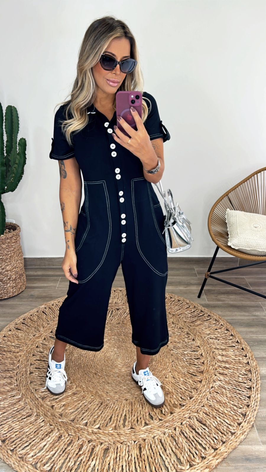 Macacão Pantacourt pespontado em moletinho premium com elastano.