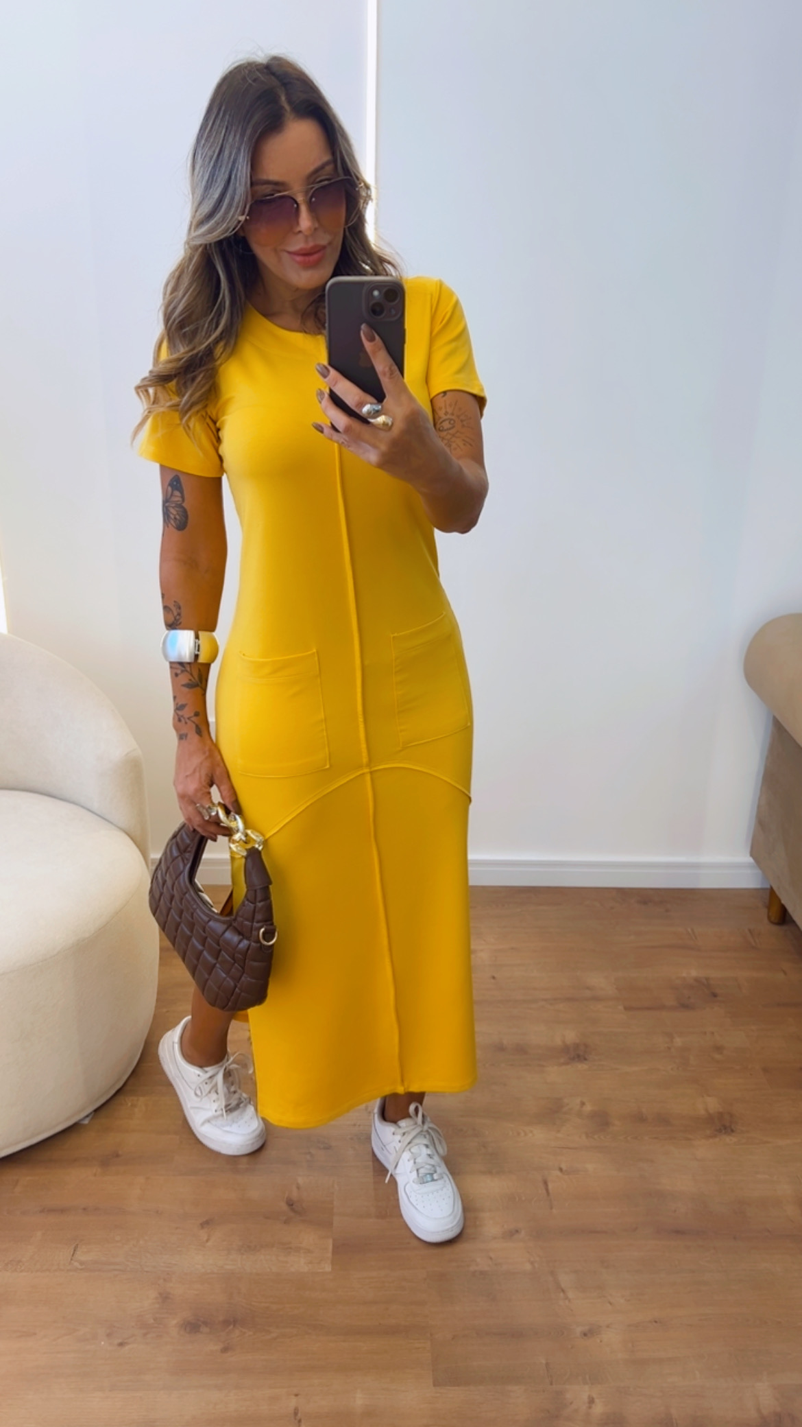 vestido midi em moletinho premium com detalhes de costura a fio.